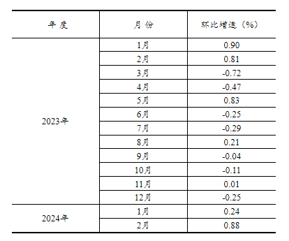 根据季节调整模型自动修正结果,对2023年1月份以来的固定资产投资(不含农户)环比增速进行修订。修订结果及2024年1、2月份环比数据如下: